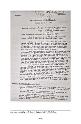 Inspection sanitaire - p.1. Dossier Stalag 1A, D.A.V.C.C Caen - 144 -