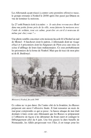 Une photo semble concerner cette moisson fin août 44 à Neuhof au sud